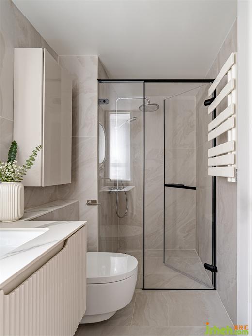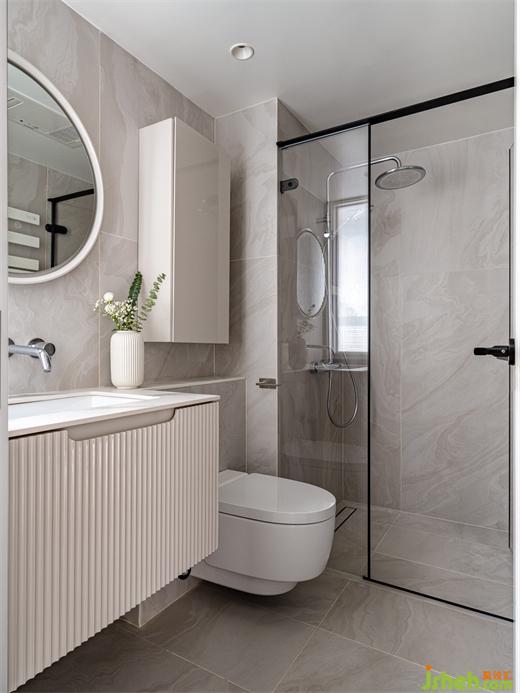 淋浴区采用下沉式设计,取消挡水石,整体感更干净舒适
