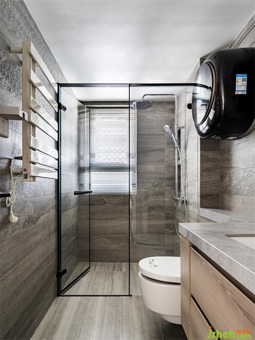 美观与实用的功能区域,海境界家装设计实现干湿分离,将洗衣机外置,保持空间整洁