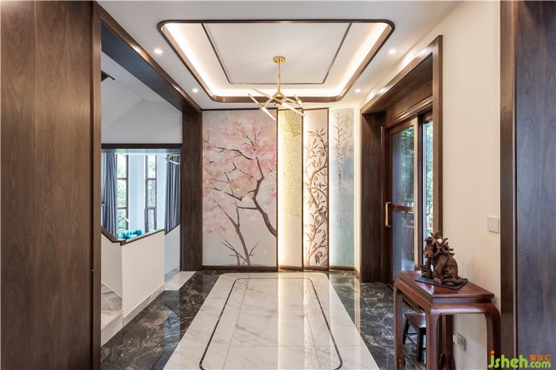 玄关是对于家来说是很重要的部位,进门的第一印象就是玄关。于是我在玄关设计上引入了“家中四季”的概念。