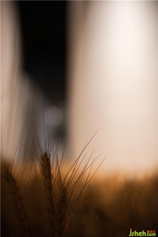 灯光强调金色的麦田,白色的房子,使他们成为空间的主角。