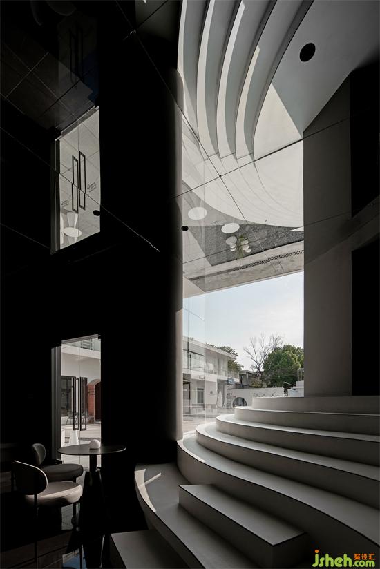 光线以不同的姿态进入室内,与深黑色镜面配合,造就了空间的深度和层次感,通过光与影的交织为其塑造了独特的空间性格。