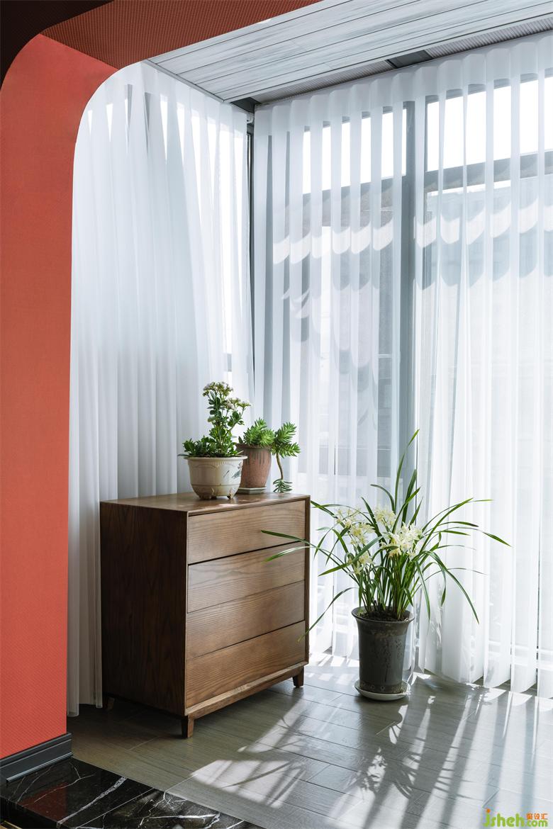 花园家居设计将色彩当作浪漫情怀,贯穿绯红的弧形线条,光的神奇力量让一种难以言喻的奇妙氛围呼之欲出。