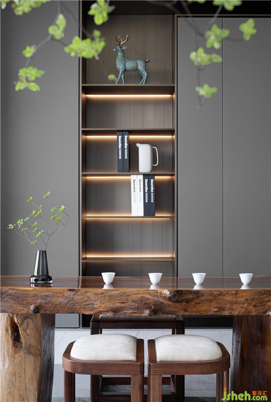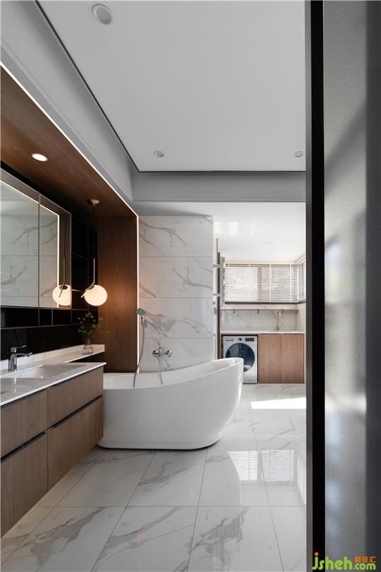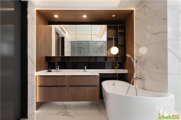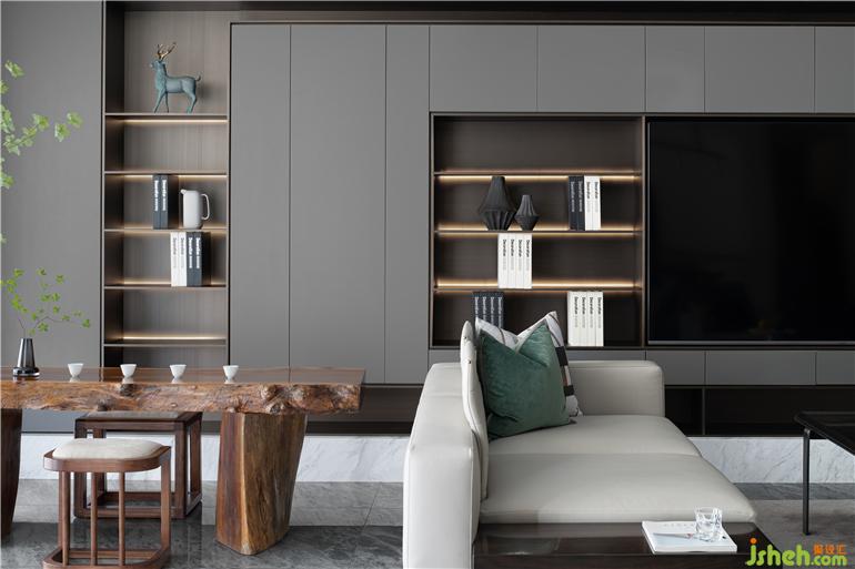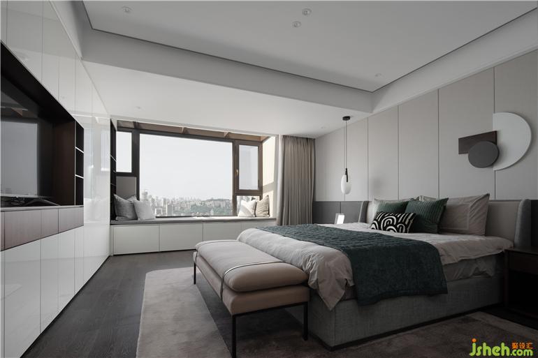原始建筑结构是一个有挑空客厅的顶层叠墅,餐厅位置狭小,没有入户更换衣帽以及收纳储物的空间配置,同时卧室数量足够但是面积都比较小,另外本身处于江边,对于江景别墅应有的感受,没有达到需求。综合考量现场情况和业主需求后,我们将原餐厅位置规划为步入式衣帽间,将客厅旁边卧室打开,植入西厨和中岛概念,强化就餐文化,并且增大沿江的观景面,让更多的江景进入空间视野,增加采光通风的同时,提升空间江景叠墅的气质。现代别墅设计在原客厅挑空区,我们将挑空区封闭,作为主卧室来使用,同时规划男女主人分开的衣帽间,卫生间,形成豪华套房的概念,增加空间使用的舒适度。一楼预留两间卧室,满足老人临时来短住的可能,同时兼具书房和娱乐室;二楼预留健身房和露台,作为一家人休闲健身的功能空间,在过道部分植入迷你吧,满足夜晚饮水需求。空间经过整合梳理,最终形成一套完整的江景别墅格局。