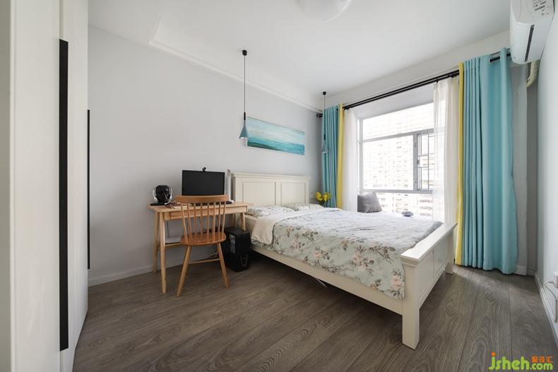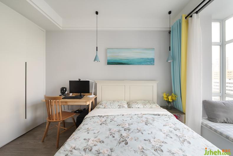 主人房的方案在施工过程中是改动了一点点的,原来设置了衣帽间,在施工过程中,业主希望空间尽可能大些,最终放弃了,男女主人都是性格耿直的人,设计师考虑在空间上,不失功能的同时空间能尽可能的简化,于是便只设置了柜体,写字台和床,飘窗安置了坐垫,这样可以偶尔享受下慵懒的午后阳光,看看书,不亦乐乎。室内设计师