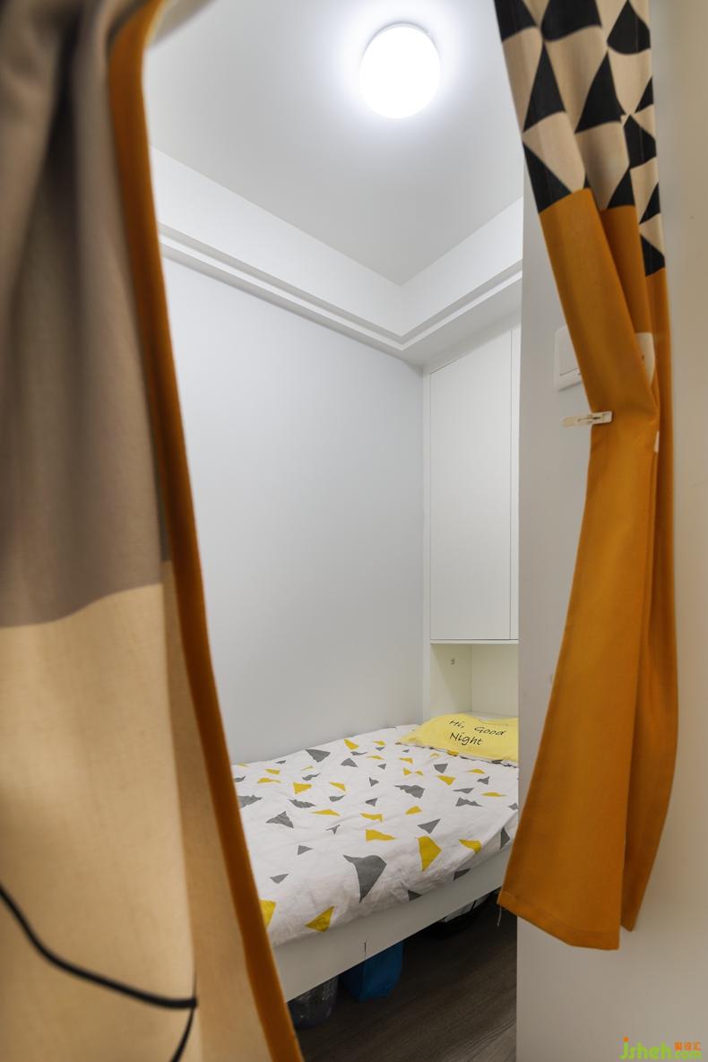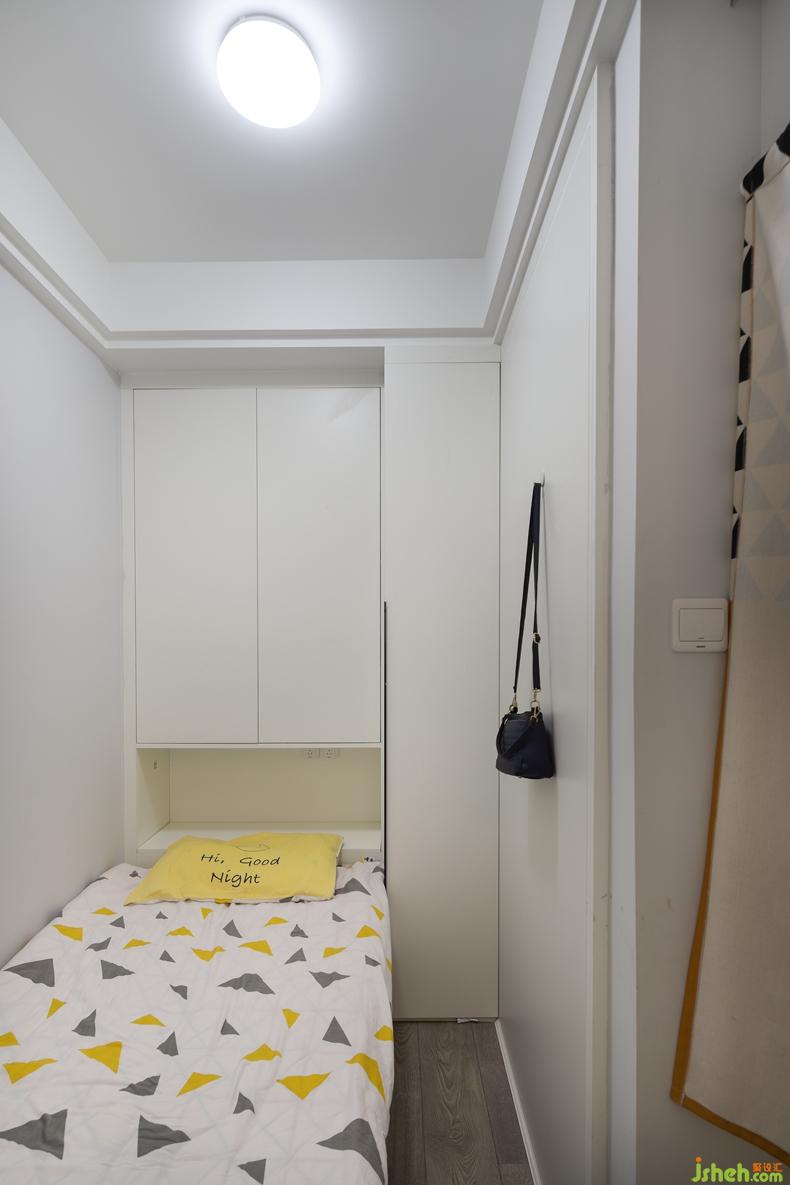 长辈房的空间也是一寸没有浪费,挂包包的其实是鞋柜的背板,储物柜也是属于比较大了,中空部分是把床底下部分的柜体也利用了起来。