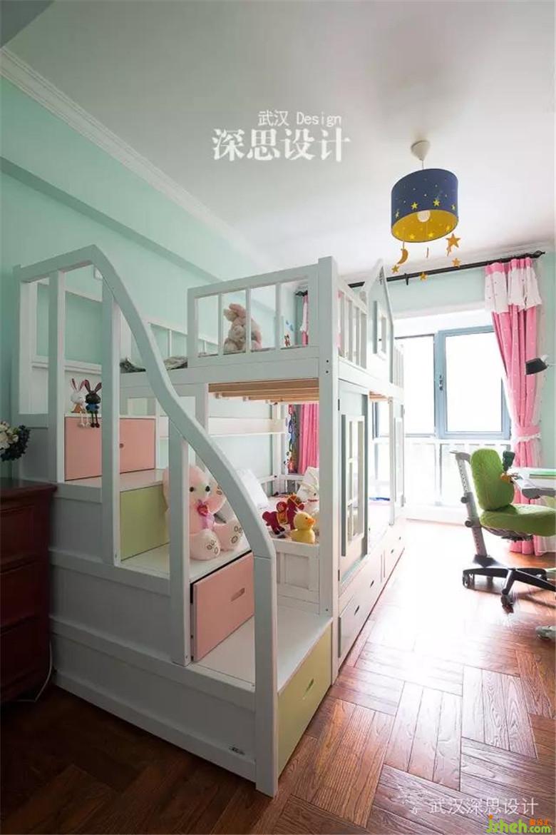 可爱的儿童房,专门定制的彩色高架床,也是两个可爱小女儿游戏的好地方。
