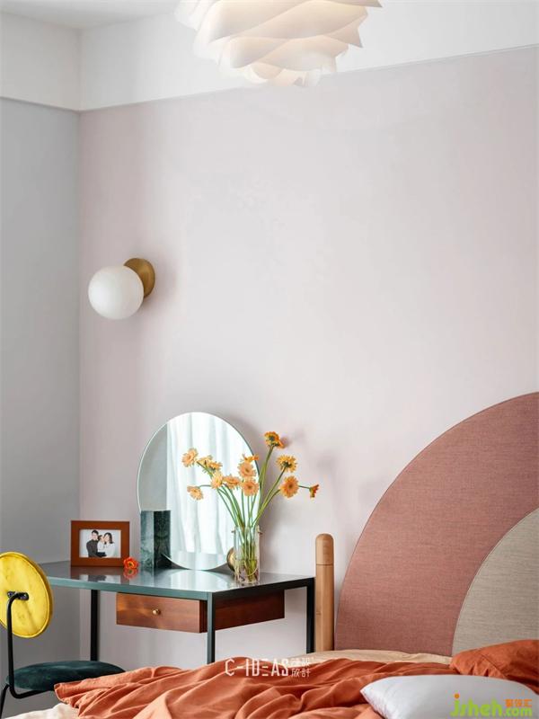 小宝贝的卧室,自然是全屋最粉嫩可爱的处所。书房与儿童房相邻的墙壁上挖出三个圆圆的月亮窗,既能方便父母照看宝贝,又增添了小小空间的延伸感趣味性。