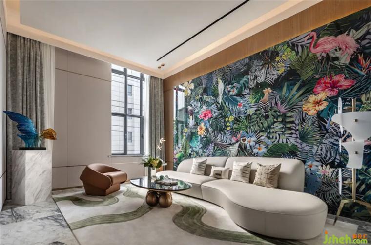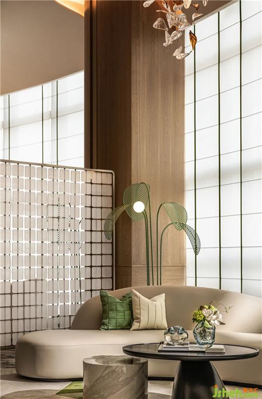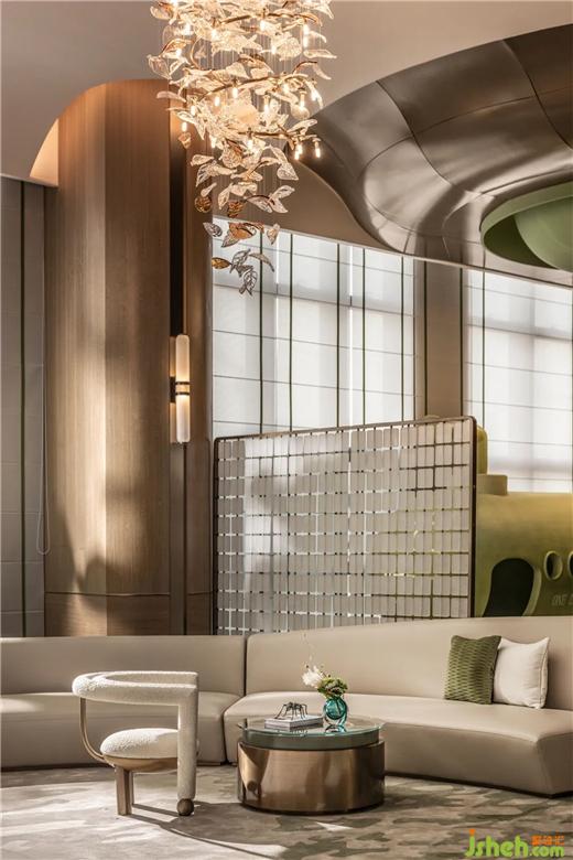 VIP区域打造出繁茂、蓊郁的雨林格调,让喧嚣得以阻隔,让自然于此栖息。城市展厅设计纵深与宽阔层高之上,迎面而至的光影斑驳于墙上。窗外的阳光漫撒而入,草木、花鸟栩栩如生。缓缓落座,便可享受当下美好。