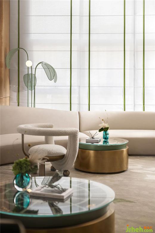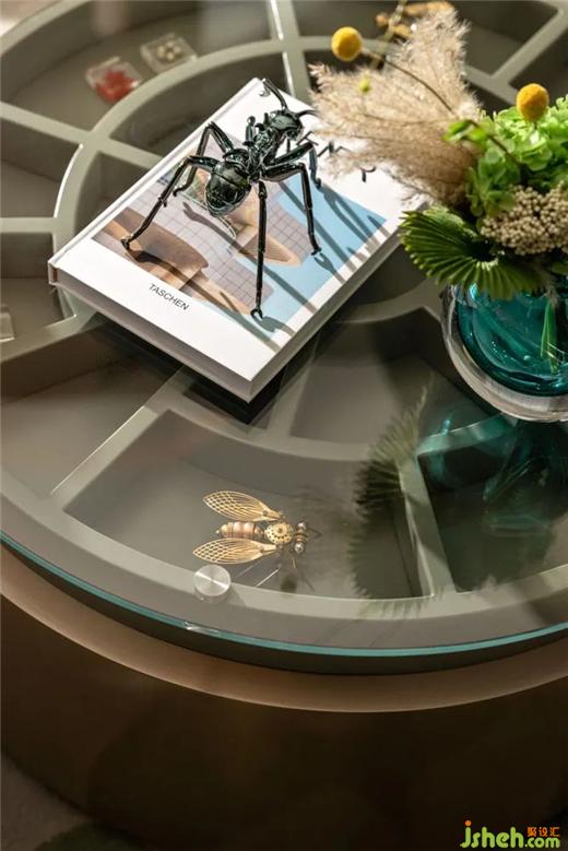 野竹分青霭,树深时见鹿。弧形沙发,封藏着各种虫蝶的茶几,阐发着生活的盎然乐趣。城市展厅设计以鹿的艺术装置映衬,留驻在这城市绿洲,犹如漫步在林间树下。为空间增添一抹轻快灵动,带走了城市的阴霾。