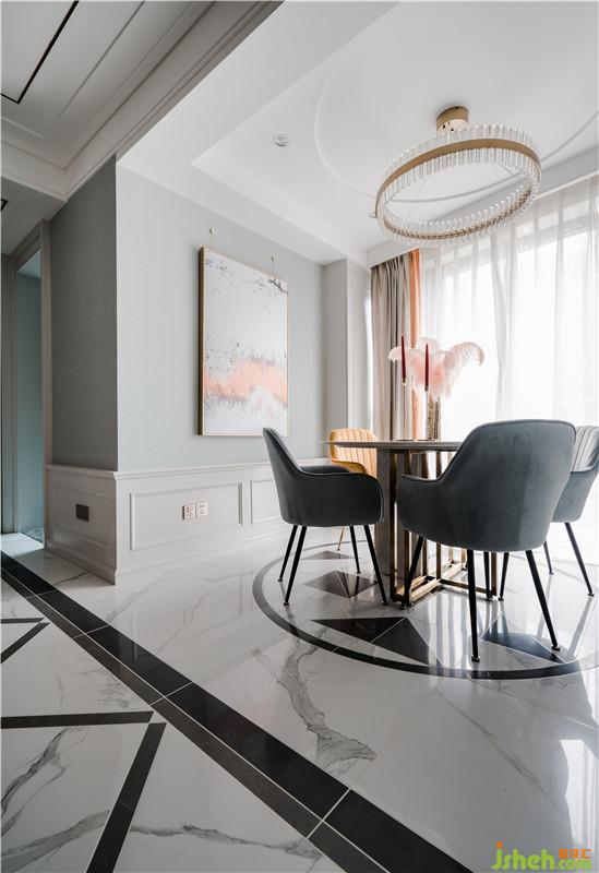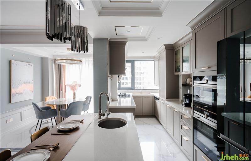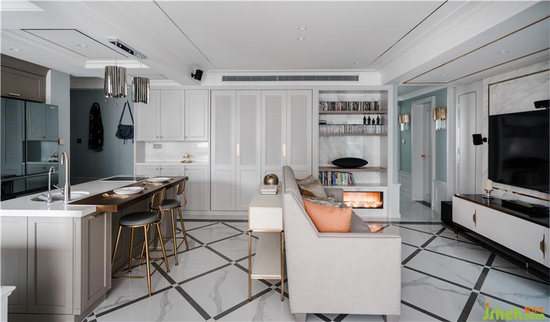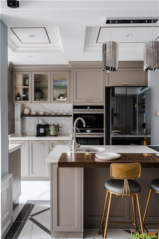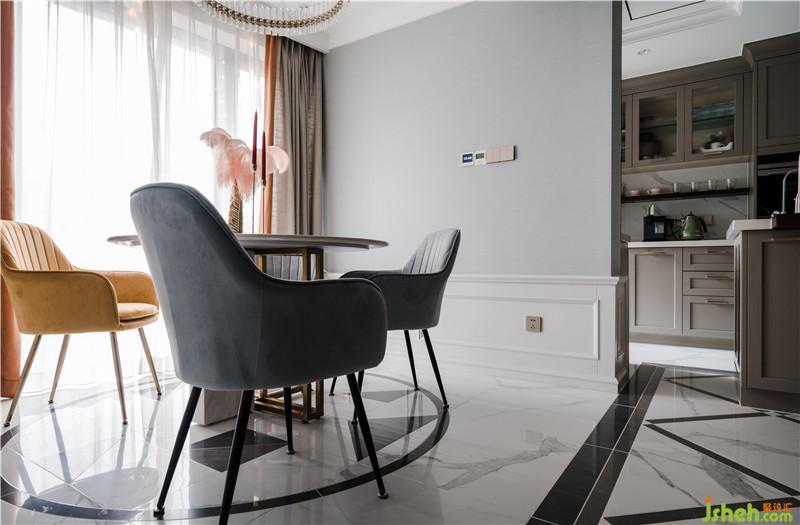 本案作品把大两房改成了小三房,牺牲了客厅的面积改造出了卧室,为一个五口之家打造了一个轻奢感十足的精致空间。室内设计师