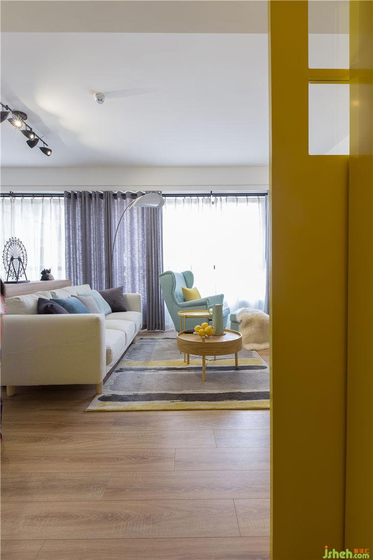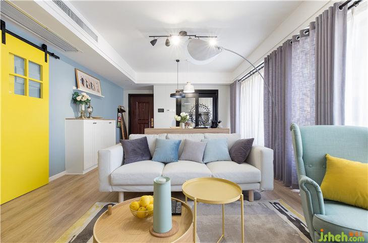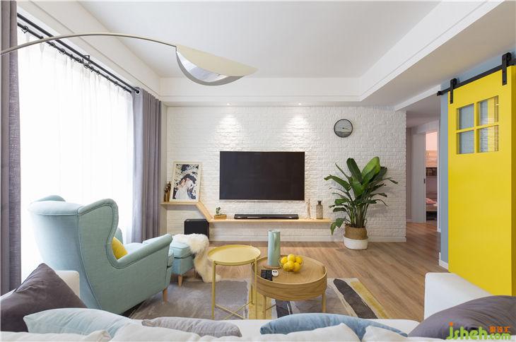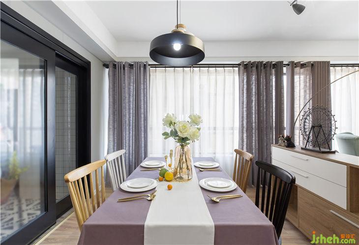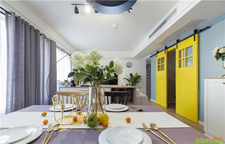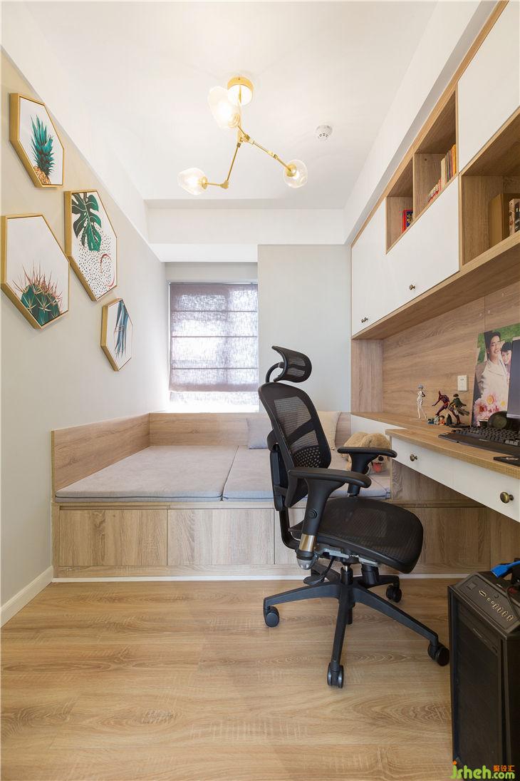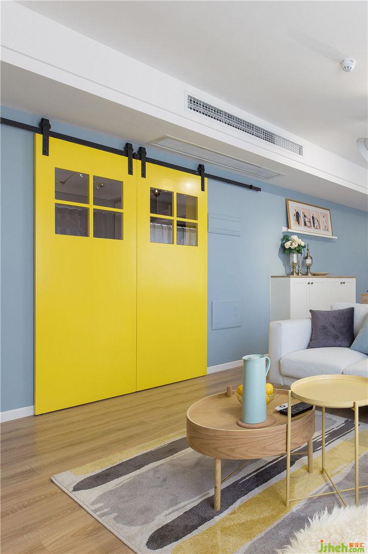 2、书房设计成灵活变动空间,设计两扇外挂谷仓门,使客餐厅与书房连成一块,空间更加宽阔,采光也得到最大的补充。