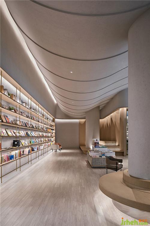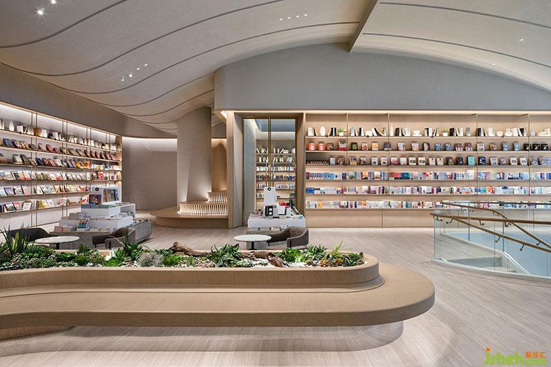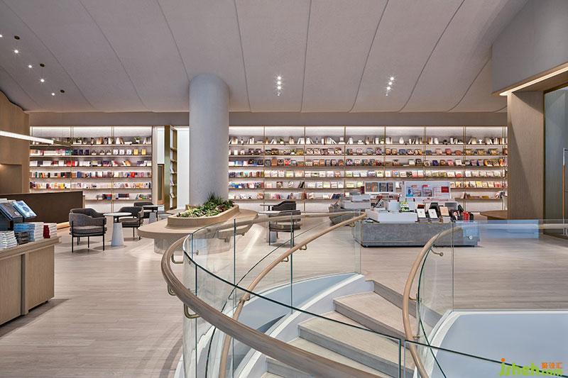 宽敞而通透的体量,为不同类型的书架提供充裕的空间,原木色书架和中岛书柜打造浓厚文化氛围。