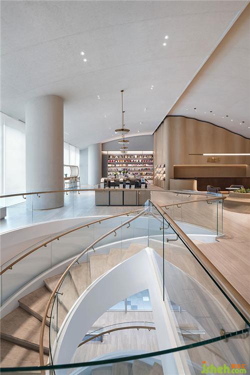 通过一个采光充足的回旋梯,开启三楼空间叙事。装修公司