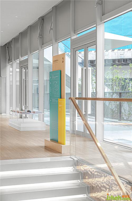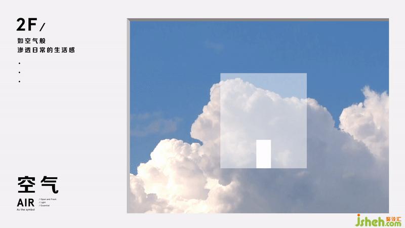 沿着主题台阶拾级而上,来到工艺工法展示区,亦是万科生活灵感展示中心。以“空气”为主题,整个楼层以白色为空间主调,通透开放。