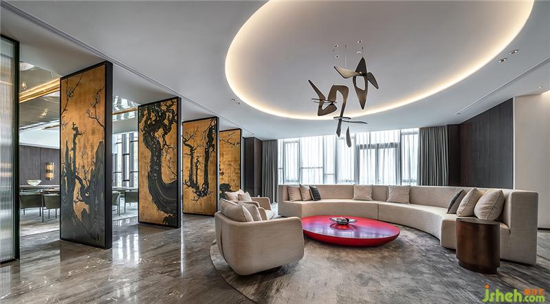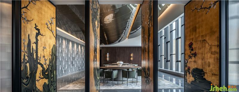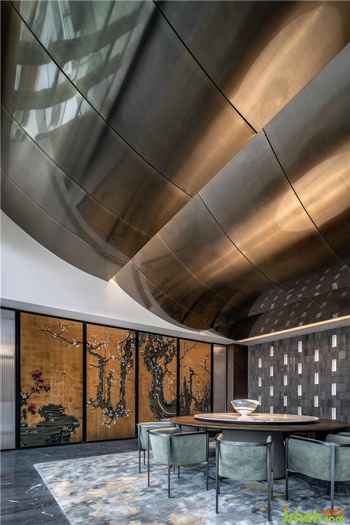探索一开始就希望这个空间是个场景化的空间,有兼具东方元素的雍容华贵感,又能将未来感相融合,就像电影里的场景一般,最后达成了期望中的效果。会所设计