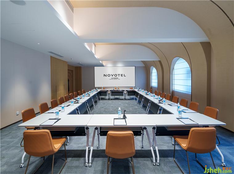 诺富特酒店设计空间内离不开光的指引Guide of light,犹如我们指引客人们来到景观最好的C栋露台打卡拍照,我们希望给到一个空中栈道的概念,旅行者联想到去考古冰洞群的体验,同时又把露台和分散的局部室内空间组合成一个不一样的行政酒廊。