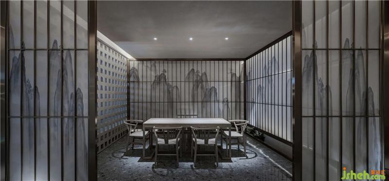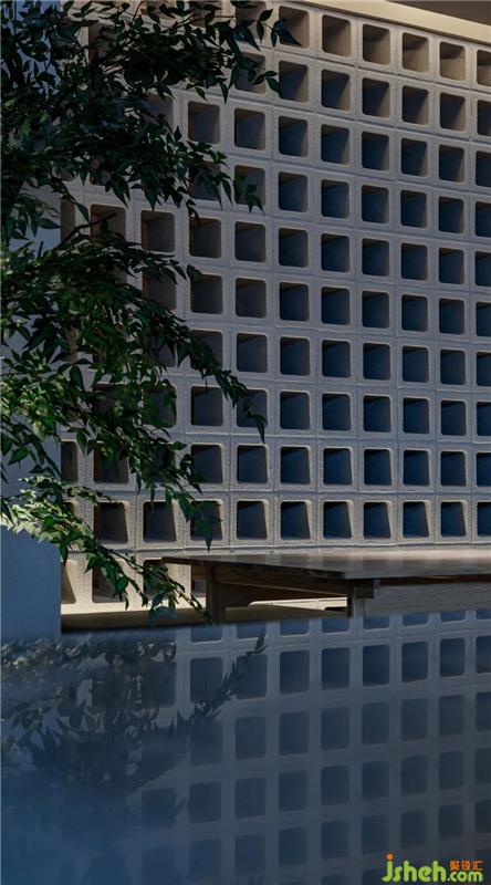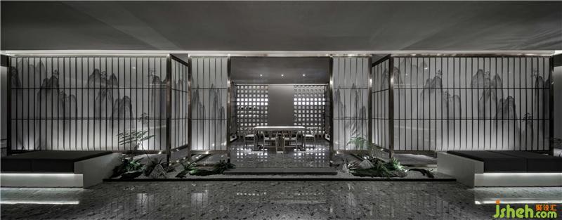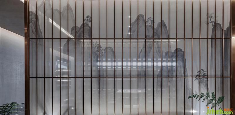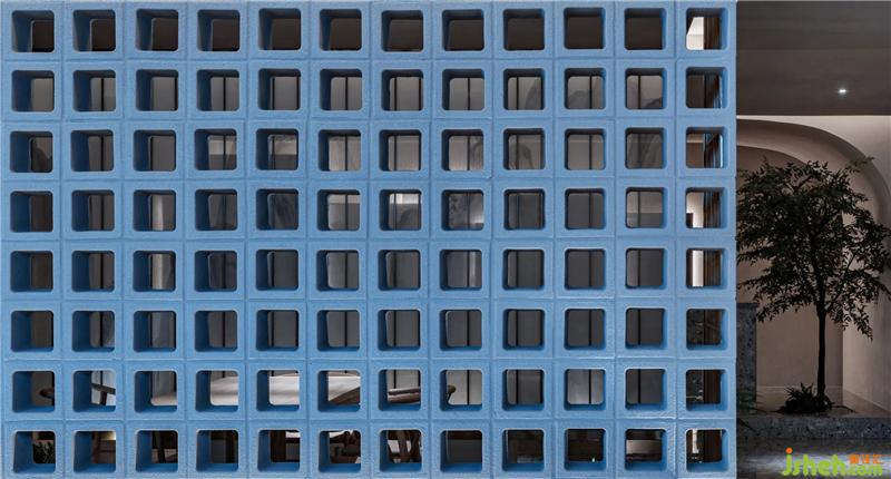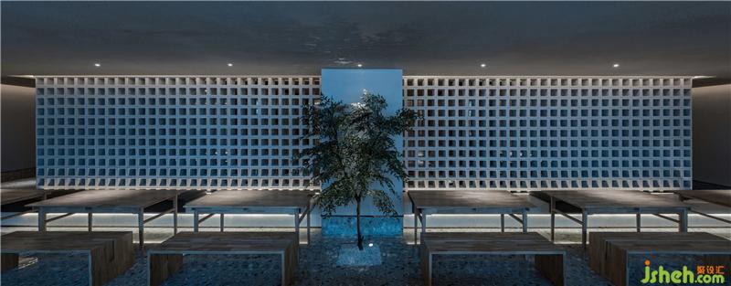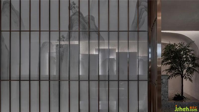主要材料:水磨石 不锈钢格栅 空心砖 绢纱 艺术漆