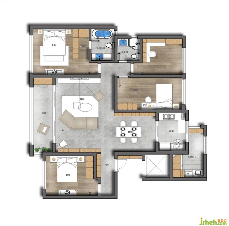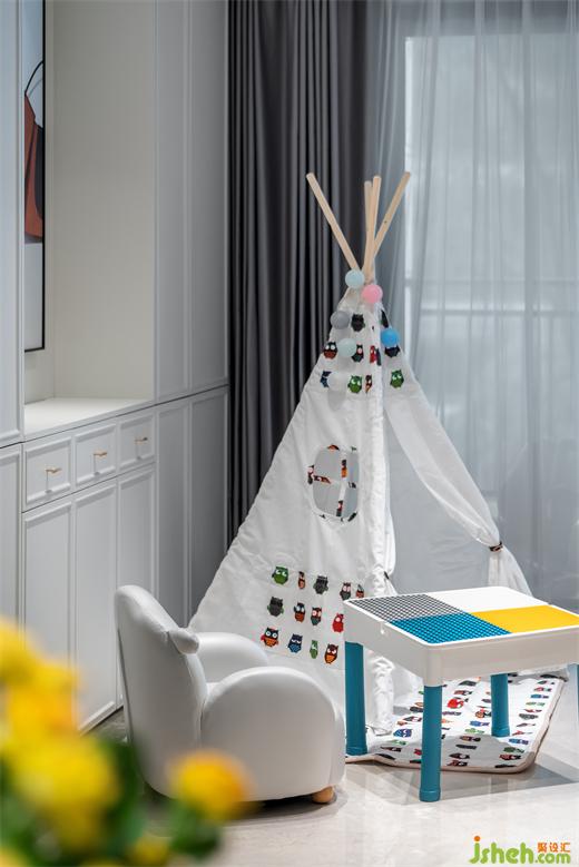 房屋为四室两厅双卫精装交付,成都住宅设计在客厅空间中重新规划空间功能,并对原空间中客厅背景,沙发背景,餐厅背景墙进行重新规划,将沙发后空间规划为儿童玩耍区,阅读区,并调整为无主灯的照明方式,形成重点照明区,让整个空间灯光层次更好。在餐厅中增设餐边储物柜,精致的门型结合长虹玻璃,并形成惬意的咖啡角,同时也满足餐厅是储物功能。在主卧室空间中原空间结构为主卫生间门对主卧室床,在利用主卫与主卧室之间的空间形成开放的衣帽间空间,方便使用的同时也解决了主卫门和卧室的关系。让房间产生温度的,不仅仅是收纳、功能、颜值,还有对生活和家的热爱。