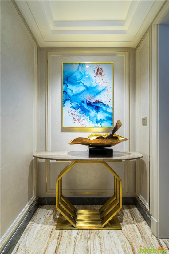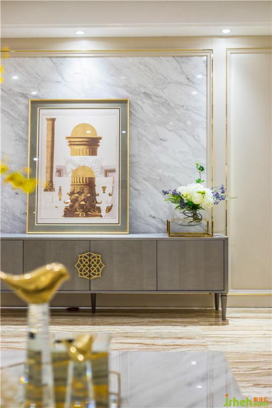 生活中的雅致与浪漫是主人一直推崇的一种生活放式,全房地面采用大理石材质,石材的光泽填补了本户型自然采光不足的缺失,墙板的木质肌理搭配金色铜条,视觉上恰到好处的营造出精致时尚的优雅魅力。装修公司
