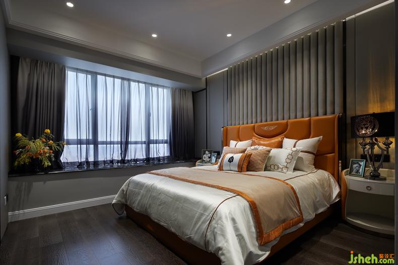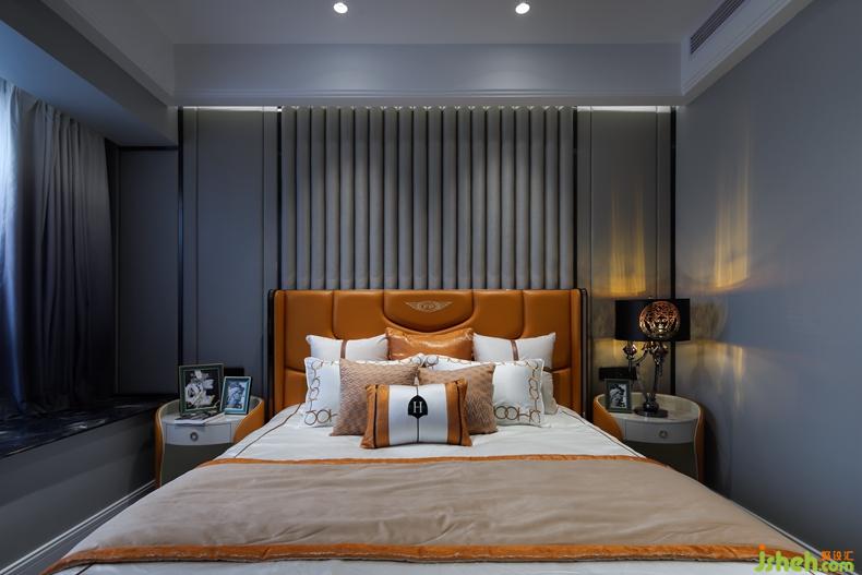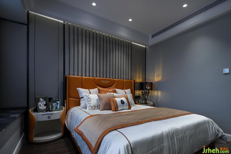 主卧作为睡眠空间,以深浅不一的灰色为基调,辅以橙色点缀,体现多层次的丰富内涵。室内设计师崇尚细致的体验感,于细节处缀以艺术的饰品,不经意间触动人心