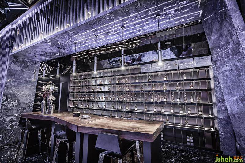 The designer adopts the brand " M" as the core element of the design, combines the color attribute of KING ( with the definition of " gold" ), restructures the space with a lot of golden lines, which is applied to every corner of the space. Every corner contains the " M" element, highlighting the brand theme impression from the askew pass in the hall, the staggered geometry of the ceiling, the irregular shape on the side of the bar counter, the skew treatment of the glass railing, to the irregular mosaic on the ground, the columns shuttling between VIP ceilings and so on.