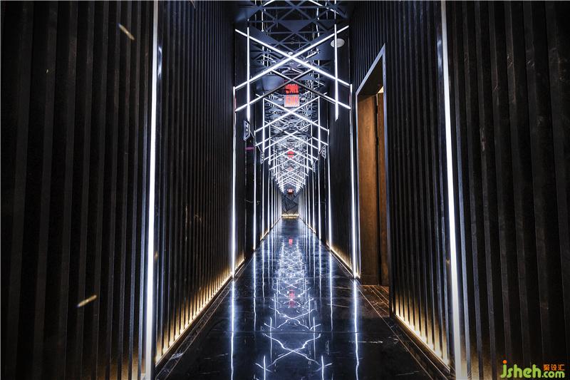 新冶组打破传统走道空间的设计做法,在设计细节上,如空间线条的连续性、空间的转折、空间中灯光的运用,都加入了科幻元素,打造超维度空间的时光隧道感,穿过即抵达娱乐新空间。装修设计