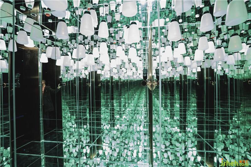 走道的设计延伸了枯山水文化,参考日本前卫艺术家草间弥生热爱的圆点元素,在墙面设计了大小不一的突起圆点,结合拐角走道的大片植物倒影,格调及风尚并存,目光所到之处皆为精品。会所设计