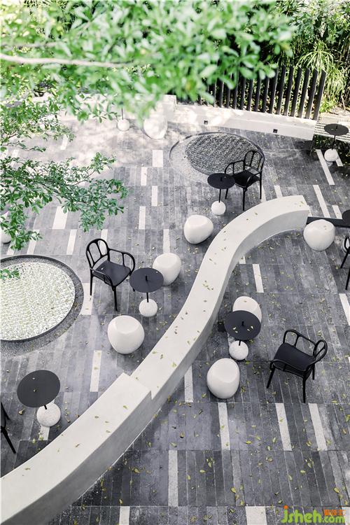 The strip lights and light films are inlaid in the ceiling and the metal grilles to highlight the simplicity and elegance of the space. And the aluminum foam sheet covering the side walls is in contrast with the delicate satin brushed metal. Sitting by the window, you can have a great view of the luxuriant green and feel relaxed and refreshed.
