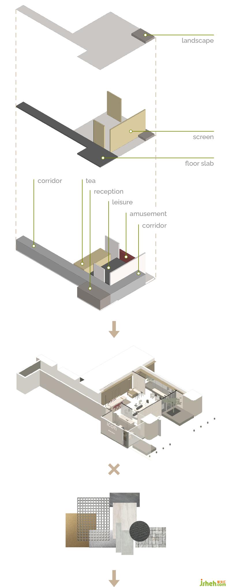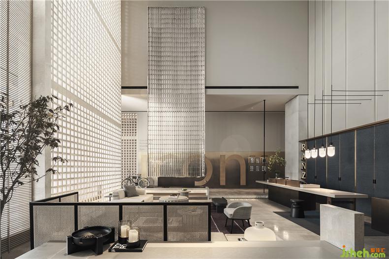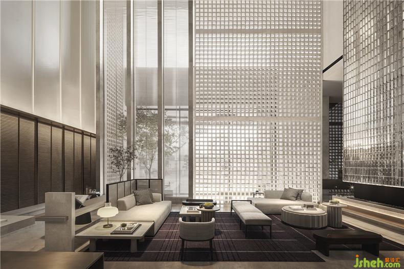 重新排布格局,将地面局部抬高,三面定制的陶砖屏风高墙区隔,酒店设计用当代语言重新演绎古典园林的多进式动线布局,打造大堂的有趣性,玩出空间质感