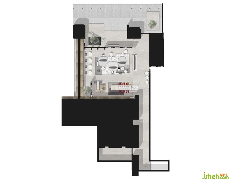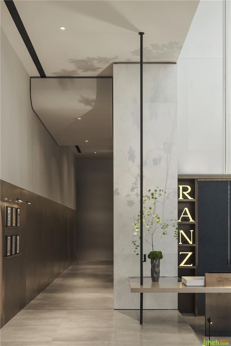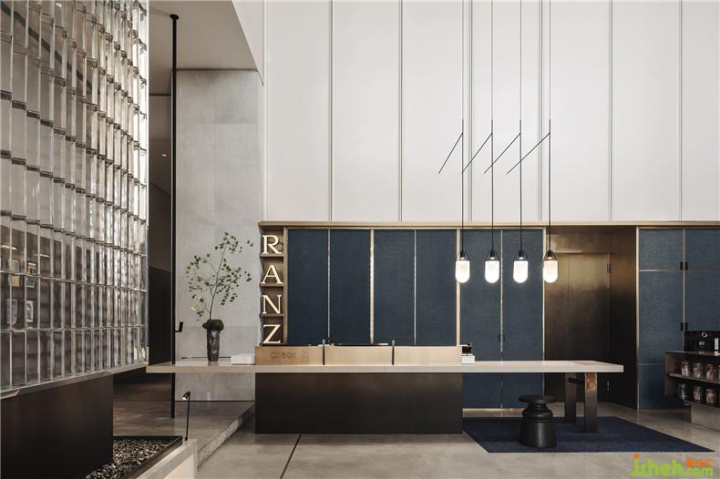 设计师打破以往过厅的单一功能,拆分并重新划定空间比例,人性化陈列和休闲区设置,酒店设计天花板中式屋檐元素,为电梯到客房的动线制造缓冲时光
