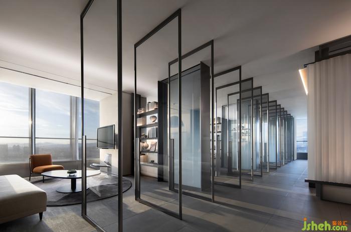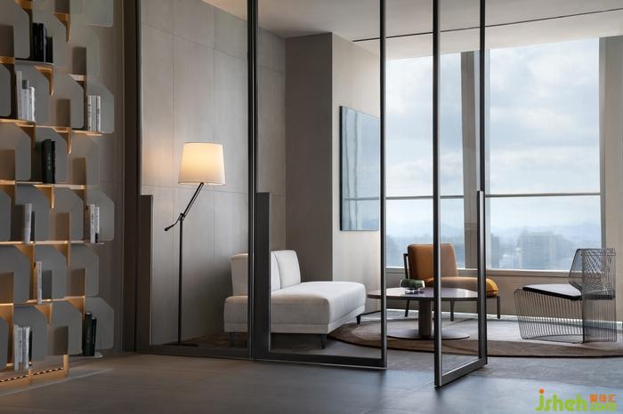 自然光在洽谈间玻璃门窗的平衡与稳定之下进入,