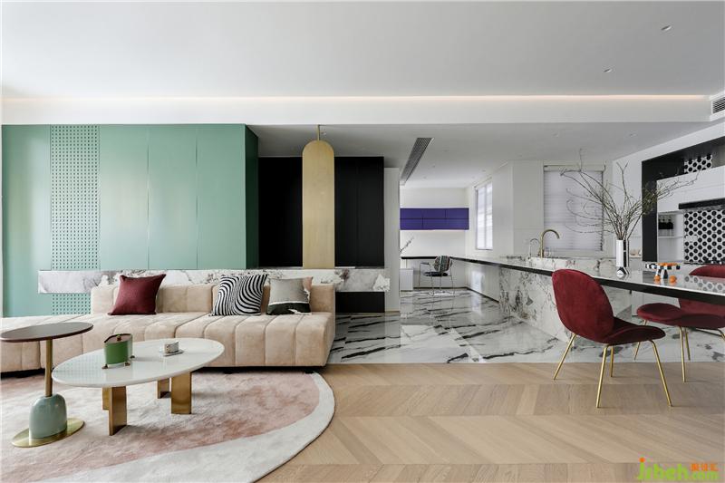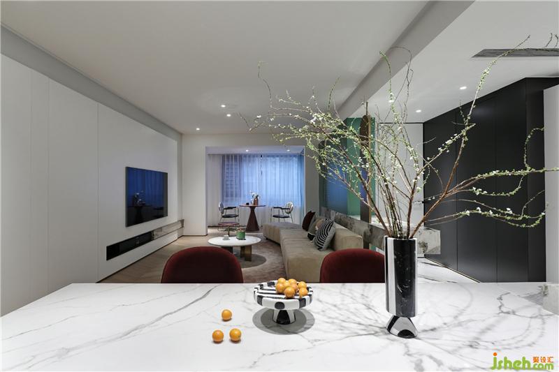 本案以色彩为线索,在现代主义美学基础上,以雅白为背景,融入缤纷色彩,成就本案的独特艺术风格。春暖花开阳光系的黄,秋日余晖浪漫风的粉,生机勃发热带雨林式的绿,深邃明净大海般的蓝,这些最接近自然的颜色,搬进居家环境之中,回应着人们对于都市自在生活的向往和期盼。