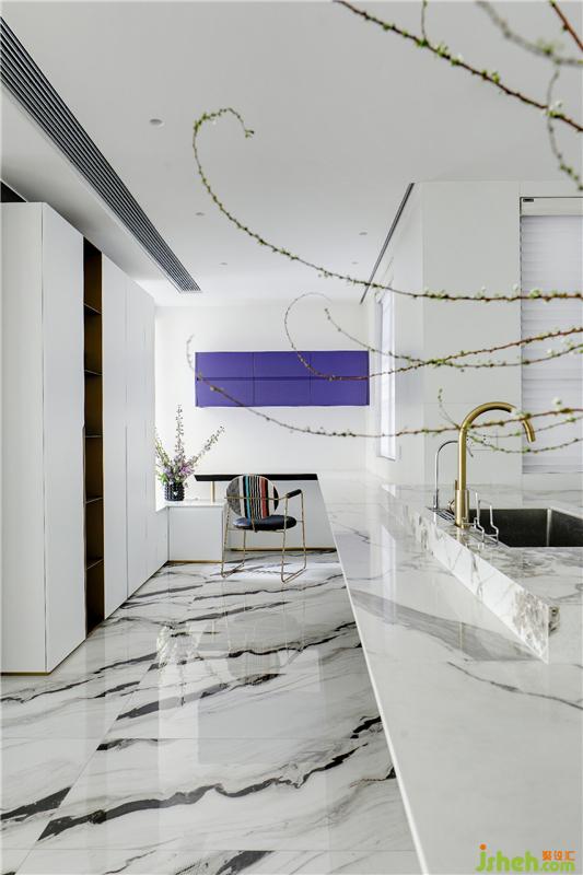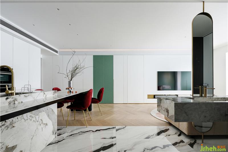 光与影的完美交融,白调与绿调的互相映衬,是空间与意境的诗意体验,是艺术与生活的自然链接。在休闲区域的设计中,我们以现代主义美学手法作思维主线,木地板、丝绒沙发龙岩装修设计、大理石茶几等不同材料融合运用,带来极具饱满的美感。软硬材质的合理配比,冷暖色调的适用,每一个节点我们都为之感受自然带来的舒适与安逸。