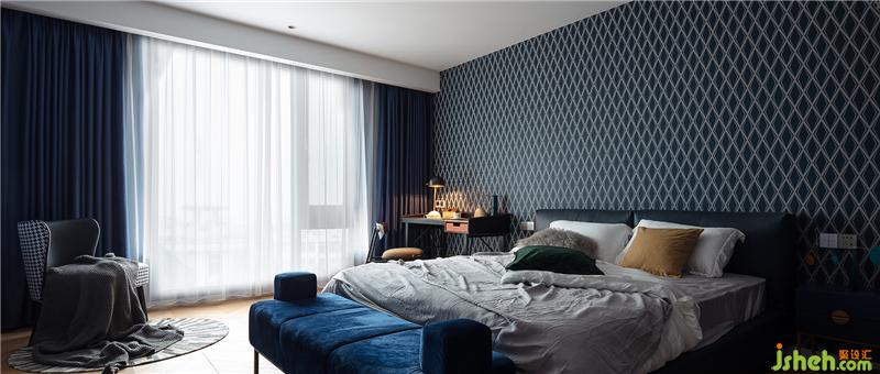 “知其黑, 守其白, 为天下式”, 主卧大胆采用复古元素打造大面积的背景墙,搭配柔白的床品。线条的单一性、面的组合性、块的独立性三者结合, 让空间排列更加柔和、协调。由面到块福建别墅设计, 是从二维向三维的转换,,这种视觉效果让空间疏密得当, 形成“疏可走马、密不透风”的感官体验。