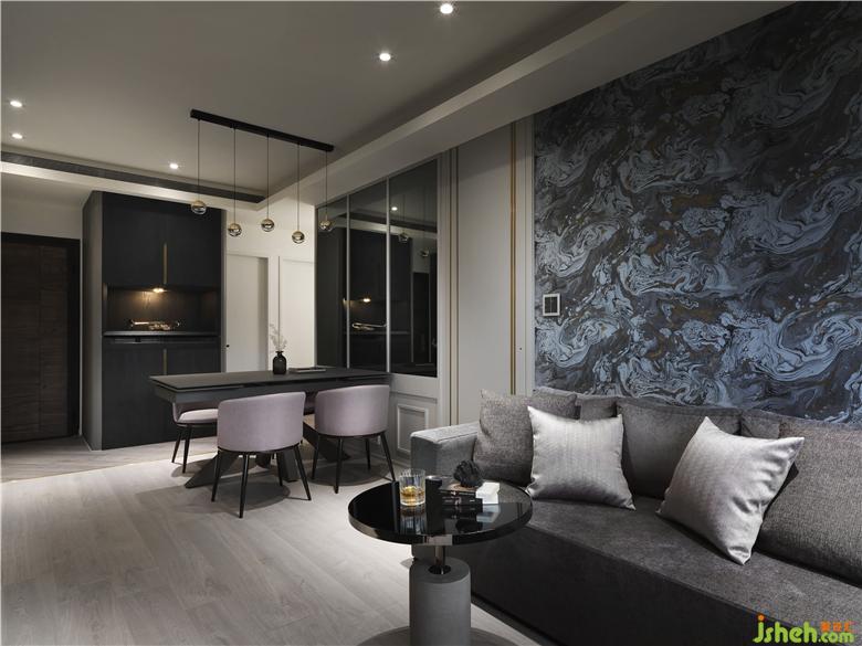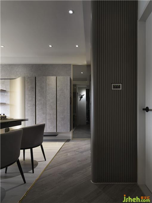 走遍大江南北的國際領隊在旅程結束後,身體總是疲憊不堪,希望自己的家也能像是飯店套房一樣寬闊舒適。這次屋主找上陳彥豪設計師,他將為 17 坪新成屋創造出 3 房 2 廳的超值享受,並透過實木條烤漆、藝術漆、鐵件、壁紙、灰鏡、通電玻璃,為國際領隊創造出具有摩登藝術感的現代單身宅。 原有玄關因門片開向造成的視覺狹隘感,在設計師規劃下,運用曲線造型設計於櫃體,達到視覺向公領域延伸的開闊感受。而客廳電視牆則大膽使用帶有金屬光澤的藝術漆,演繹飛機窗外流動的雲彩意象,巧妙呼應屋主故事。原有的狹長型格局,設計師則發揮空間放大術,在餐廳鋪陳大面灰鏡,並透過反射的燈飾與桌面,達到虛實合一的開闊效果。 下機後回到家並非旅途的結束,而是另一種享樂的開端。陳彥豪設計師透過對藝術的解析,為具有國際視野的領隊創造華麗而摩登的住家,讓空間不僅擁有飯店的高級享受,更充滿獨特風采。装修设计
