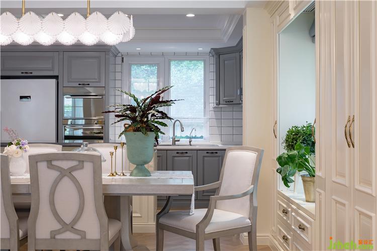 餐厅的设计遵循整体的设计原则,强调出餐厅空间的所属范围,再配以简约、优雅的美式餐桌椅,让美式风格体现的淋漓尽致。