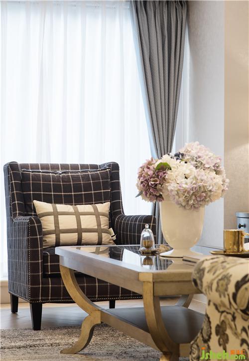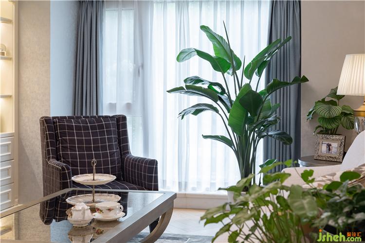 客厅落地窗的设计,做了较大的平面延展。使阳光投射进来的同时,给整间屋子注满生机,记录着岁月的沉淀,给人一种非常自然、低奢的美感。