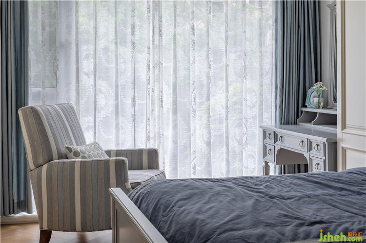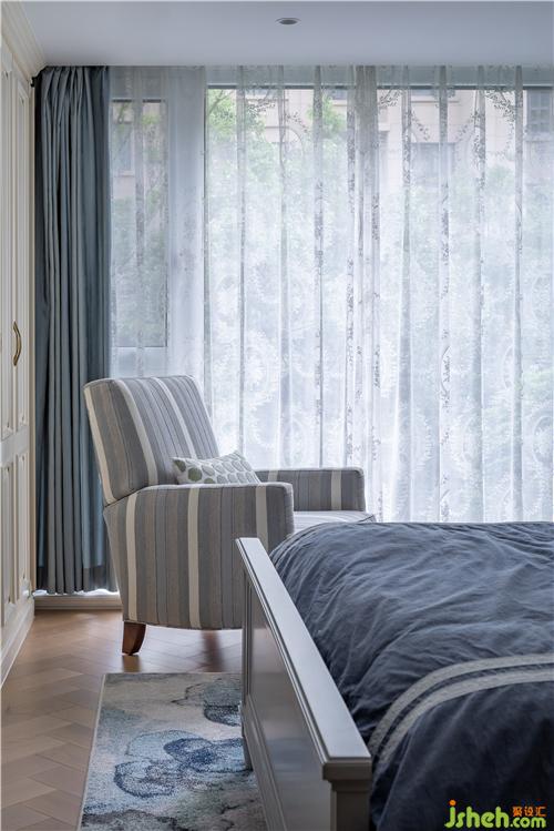 温馨柔软的布艺装点,软装和背景墙的搭配,沉静典雅的环境展现了业主对舒适生活的追求,隔离喧嚣与繁忙,静享夜与梦的惬意。