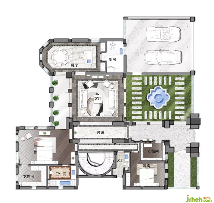 这幢别墅的客户,不单单是一位颇有内力的上市公司的管理者,也长着一张令人忘怀的儒雅的面孔,岁月侵蚀了他刚毅的面孔,却也使他的笑容更为深沉与包容。我们把这种阅尽世事后的“漫不经心”的气质融入到居所惬意与庄重并存。