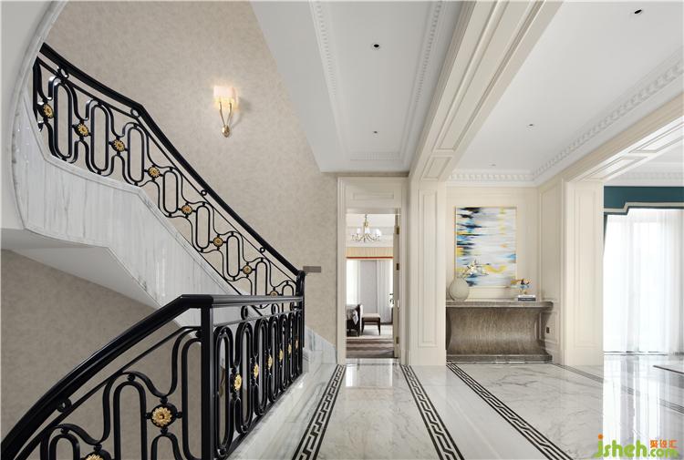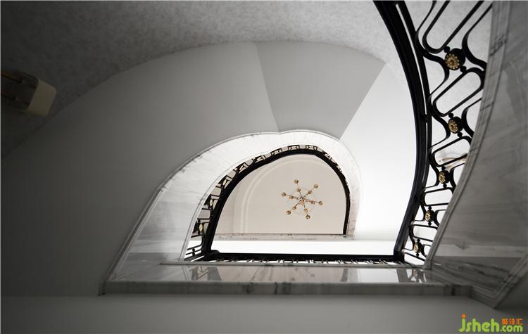 我们别出心裁的楼梯间的设计:悉心打造了人性化的踢脚灯,弧形楼梯开间比较空阔,考虑到人在这上楼下楼时光线对眼睛的干扰,选择了防眩光、小口径的踢脚灯,从一楼到三楼以柔和的光线进行过渡,在照明指示等功能满足的同时,与旋转楼梯进行一次浪漫的密会。别墅装饰