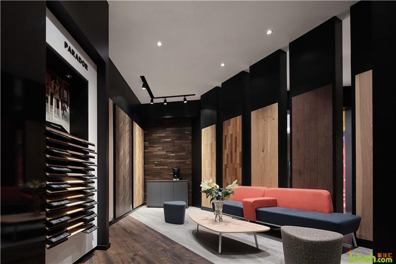 开阔的顾客休息洽谈区结合墙面产品形象展示,传达出其功能主题。