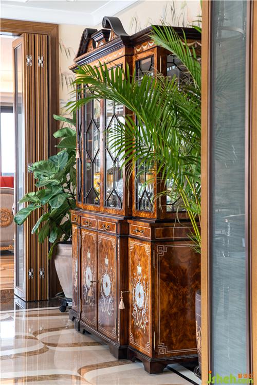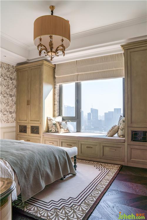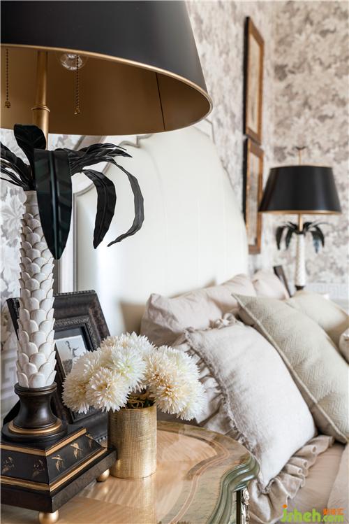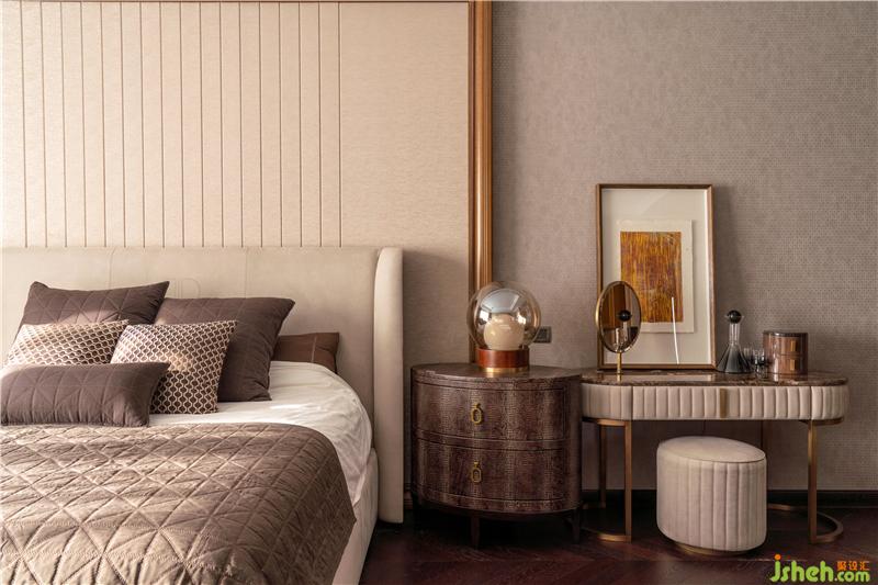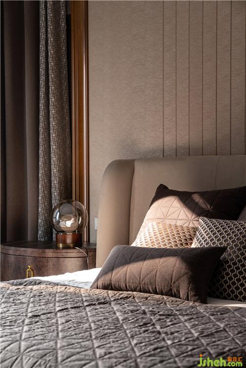 针对主卧的设计,豪宅装修设计来了个反转,没有延续外面客厅或餐厅的那种浓烈感,女主人希望自己的家整体还是呈现多元化,灯具造型和地毯的几何纹理让主卧营造出一种意大利的简约轻奢风。女主人和男主人的生活,有需要每日亲手打理、那些淳朴自然的部分,也有科技简化了日常的部分。传统繁琐与现代智能简便,两种生活状态融合于家中,映衬出夫妇俩各异的性格与其平衡。