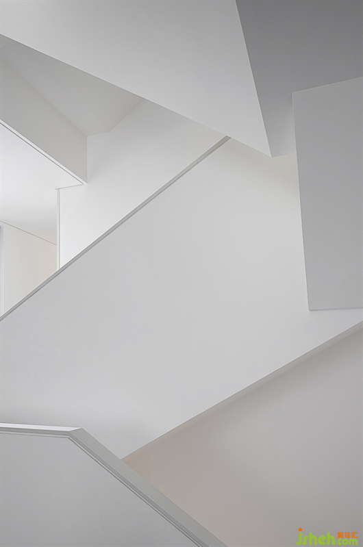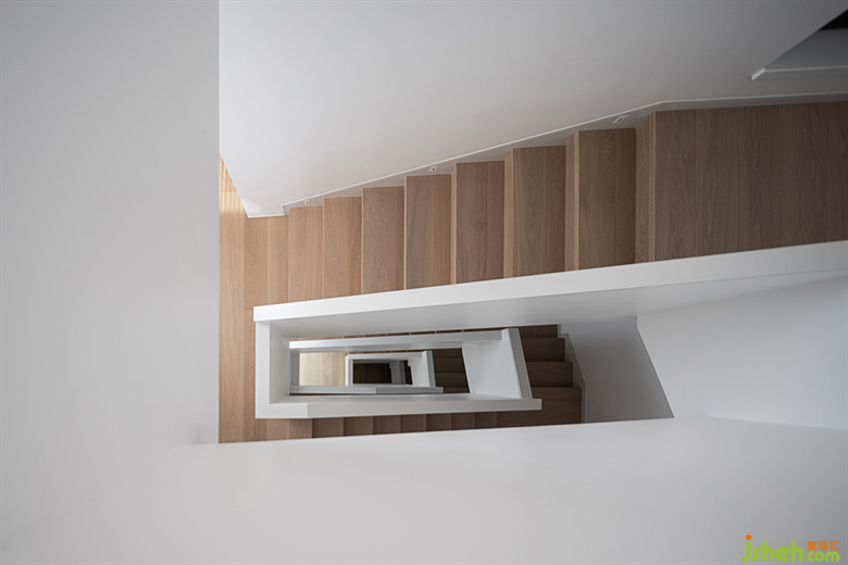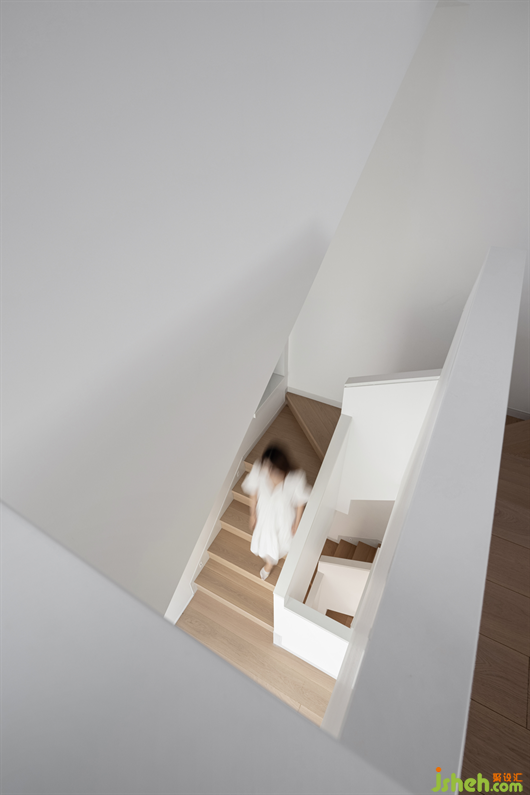 白色楼梯在满足刚性功能的同时,将空间的结构线条在此交汇,使整体视线结构有序而不呆板,同时原木色地板给人安静与平和,散发淡雅的生活温度。