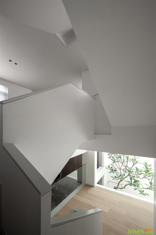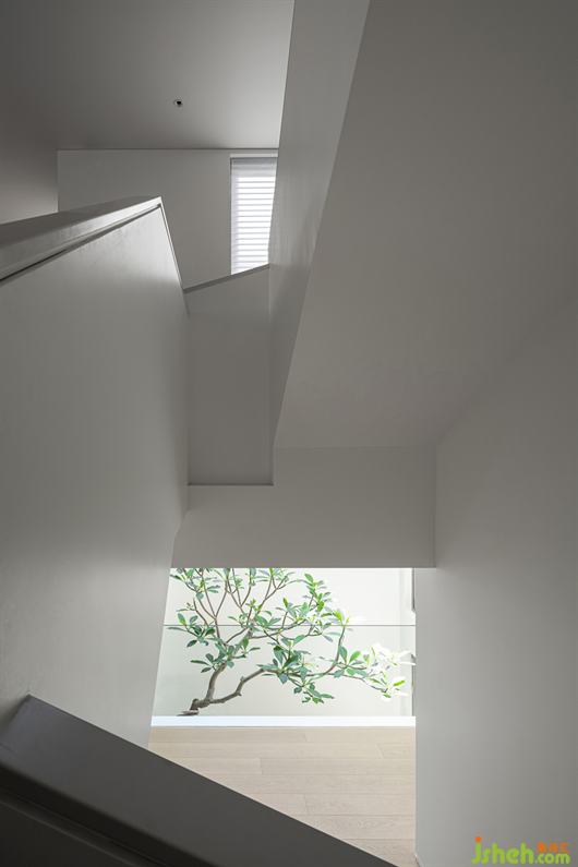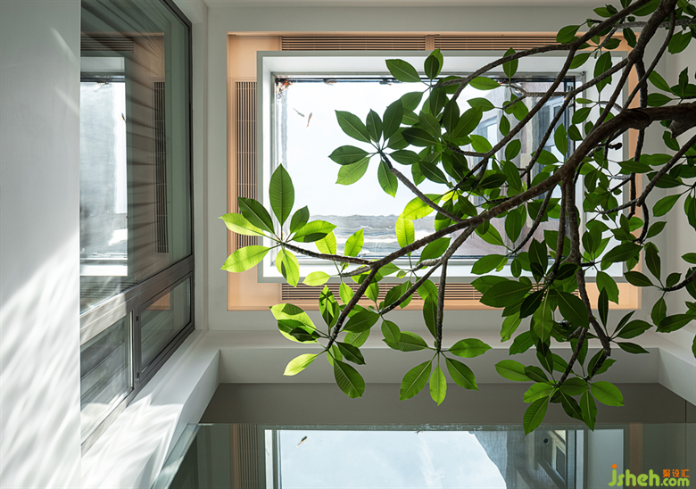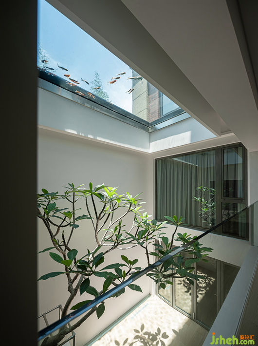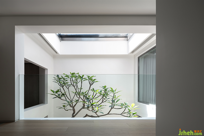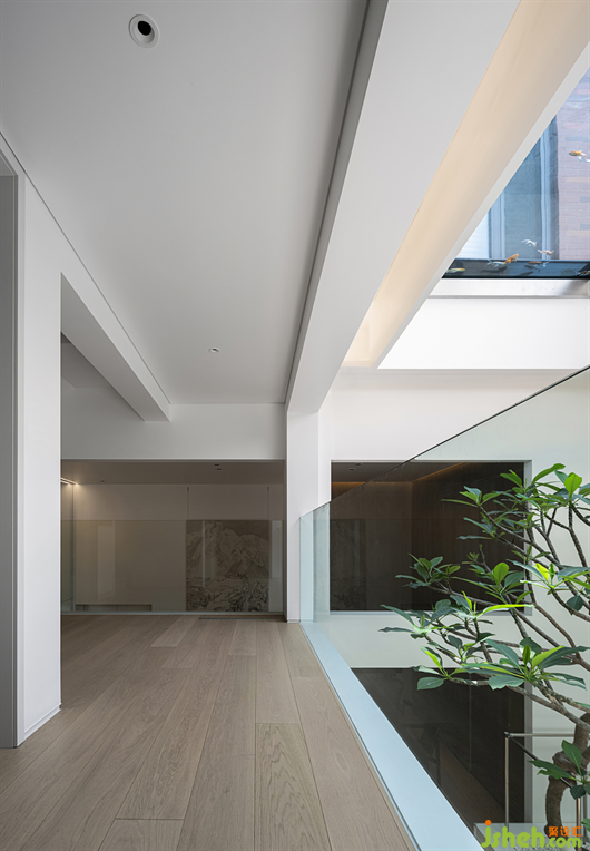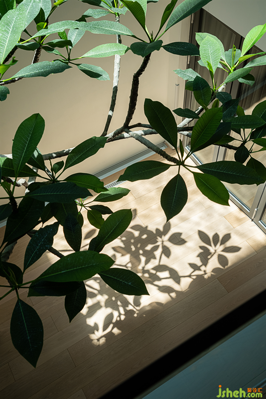 拾阶而下来到负一楼,一道光源若隐若现,探头望去便有另一番景象,映入眼帘的是一片自然天光,直射着一棵充满生机的树,宛如大自然挥洒的天然色盘。