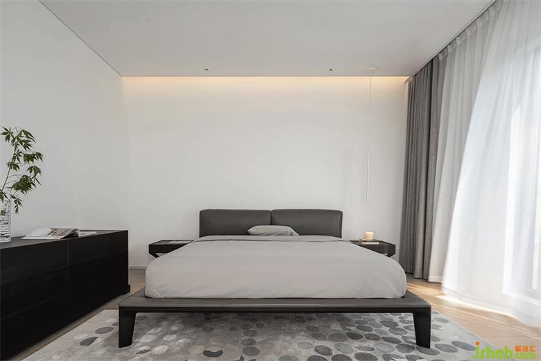 业主与设计师一致认为,寝居不应太拘束,随意适性的休憩空间才能给予人真正的放松感。别墅装修设计卧室以干练的线条实现分割,家具亦在素雅的搭配中展现出业主生活的简单节奏,从内到外散发着一种清新平静。