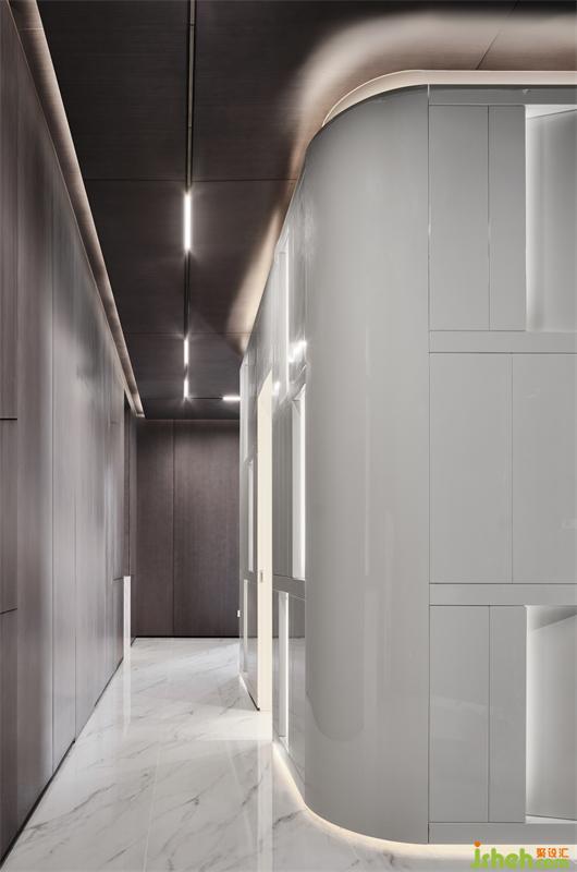 “白盒子”是设计师人性化的洞察与创新,立体装置外表平静,打开“任意门”,内里开辟出独立的衣帽间,为归家之人增添更多日常便利,一整天的风尘与疲惫在此卸下,顷刻与室外的喧嚣和嘈杂告别,迎接不动声色的归家礼仪。