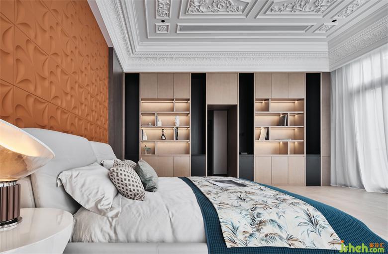 卧室天花板是工艺细节的完美展现,以纯净的白色调,中轴对称分割的线条,赋予居者充满仪式感、尊贵感的居住氛围。