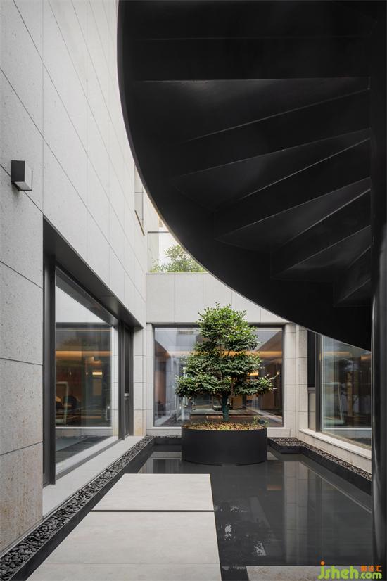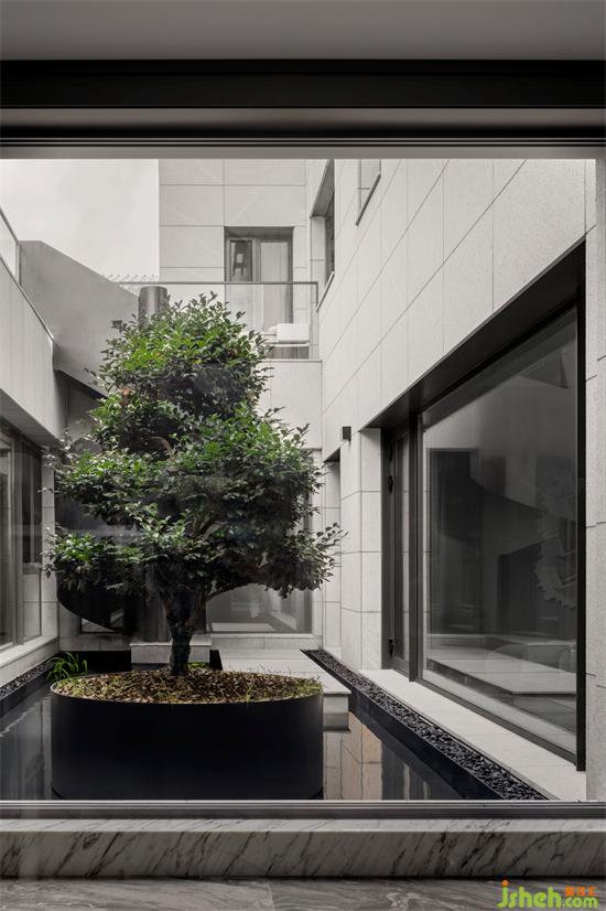 家宅不仅重在内里,从内而外的景色更是要点。为打破负1楼地下室的区域感,我们将原庭院下沉区,别墅设计打造为水景式下沉天井,并在墙壁四周使用整面落地玻璃,最大程度引入采光。任人在地下室的任何区域都能看见外景,无论阳光倾洒窗前,还是雨滴悉悉落下,皆能抚平心中烦乱。