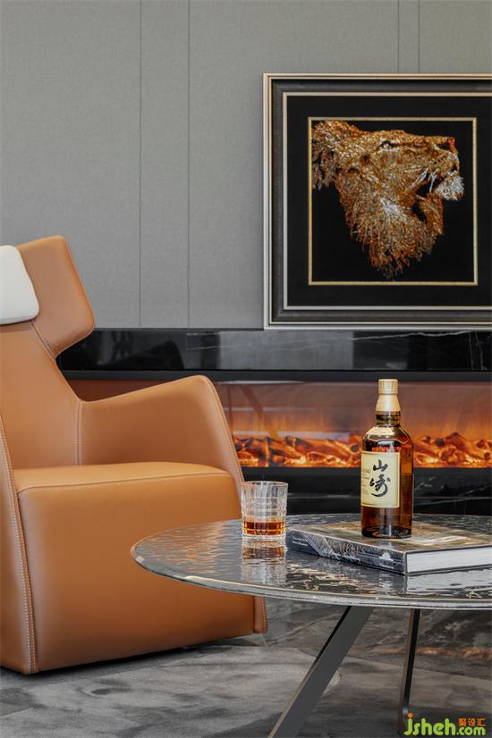 负1楼,我们则进行了大尺度延伸,创造出更多休闲生活的可能性。别墅设计沙发区面朝落地窗,与自然形态匹配的树状书架在自然光的铺洒下尤为温暖,孩子的书籍、刊物随手可取。午后,在此赴一场亲子之约,是一件非常幸福的事儿。