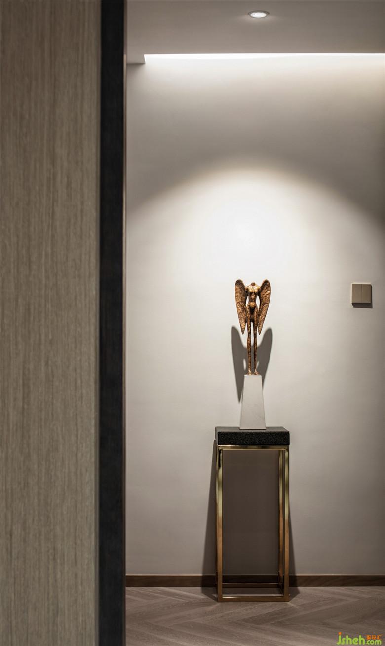 点光源进行直接照明,加以轮廓光源和小区域的吊、壁灯的泛光源等照明手法,让整个空间‘只见光,不见灯’,层次和质感得到了很大的提升。